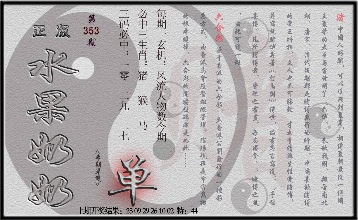 | 353期特码单双【单数】开?00准 |